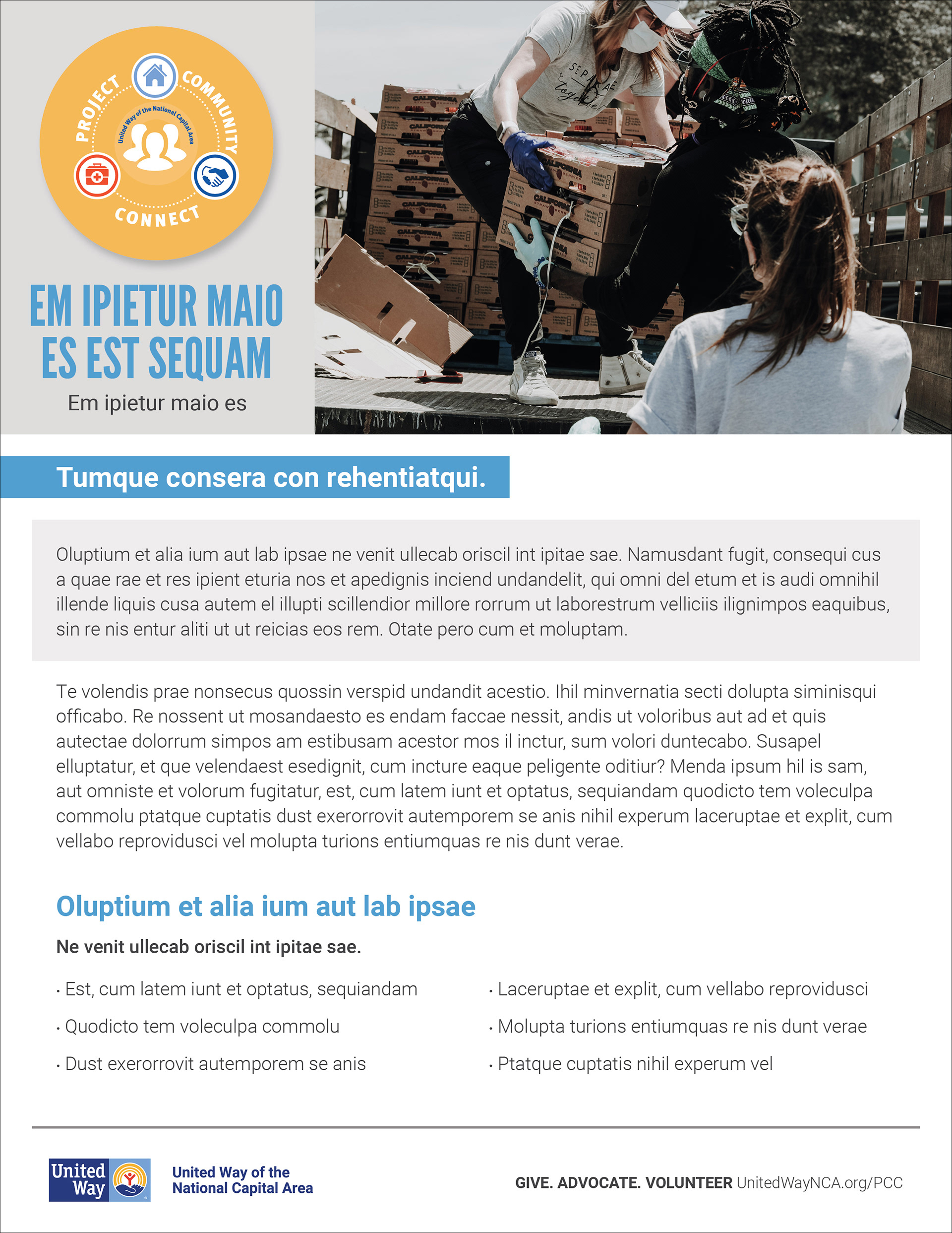 Objective: To give United Way of the National Capital Area program specific templates that they can use for their marketing materials.